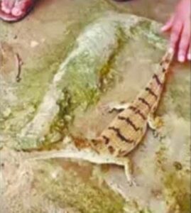 उत्तर प्रदेश।देवरिया के तरकुलवा खजुरिया रजवाहा में बसंतपुर धूसी के पास रविवार की सुबह करीब डेढ़ फिट का मगरमच्छ का बच्चा दिखाई दिया। आसपास के लोग मगरमच्छ का बच्चा देखकर सहम गए। लोगों ने इसकी सूचना नगर पंचायत के अध्यक्ष जनार्दन कुशवाहा को दी। सूचना पाकर वह नगर पंचायत कर्मचारियों के साथ मौके पर पहुंचे। उन्होंने मगरमच्छ के बच्चे को रजवाहा से निकलवाया। इसकी सूचना वन विभाग के अधिकारियों को दी। वन दरोगा ने उनसे मगरमच्छ के बच्चे को नदी में छोड़ने की बात कही तो उन्होंने इन्कार कर दिया।नन्हे मगरमच्छ के बच्चे को लेकर अपने घर गए और सुरक्षित स्थान पर रखवा दिए। नगर पंचायत अध्यक्ष ने बताया कि वन दरोगा ने सोमवार को आने की बात कही है। वन विभाग के किसी जिम्मेदार कर्मचारी के पहुंचने पर मगरमच्छ के बच्चे को उसे सौंप दिया जाएगा।